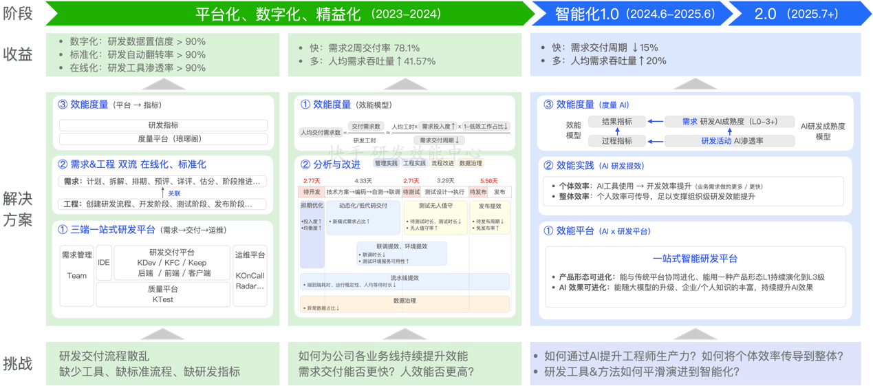 快手的经验是——先打牢平台化、数字化、精益化的基础,再用 AI 系统化改造研发范式,让个人的提效能真正汇聚成组织的提效。
